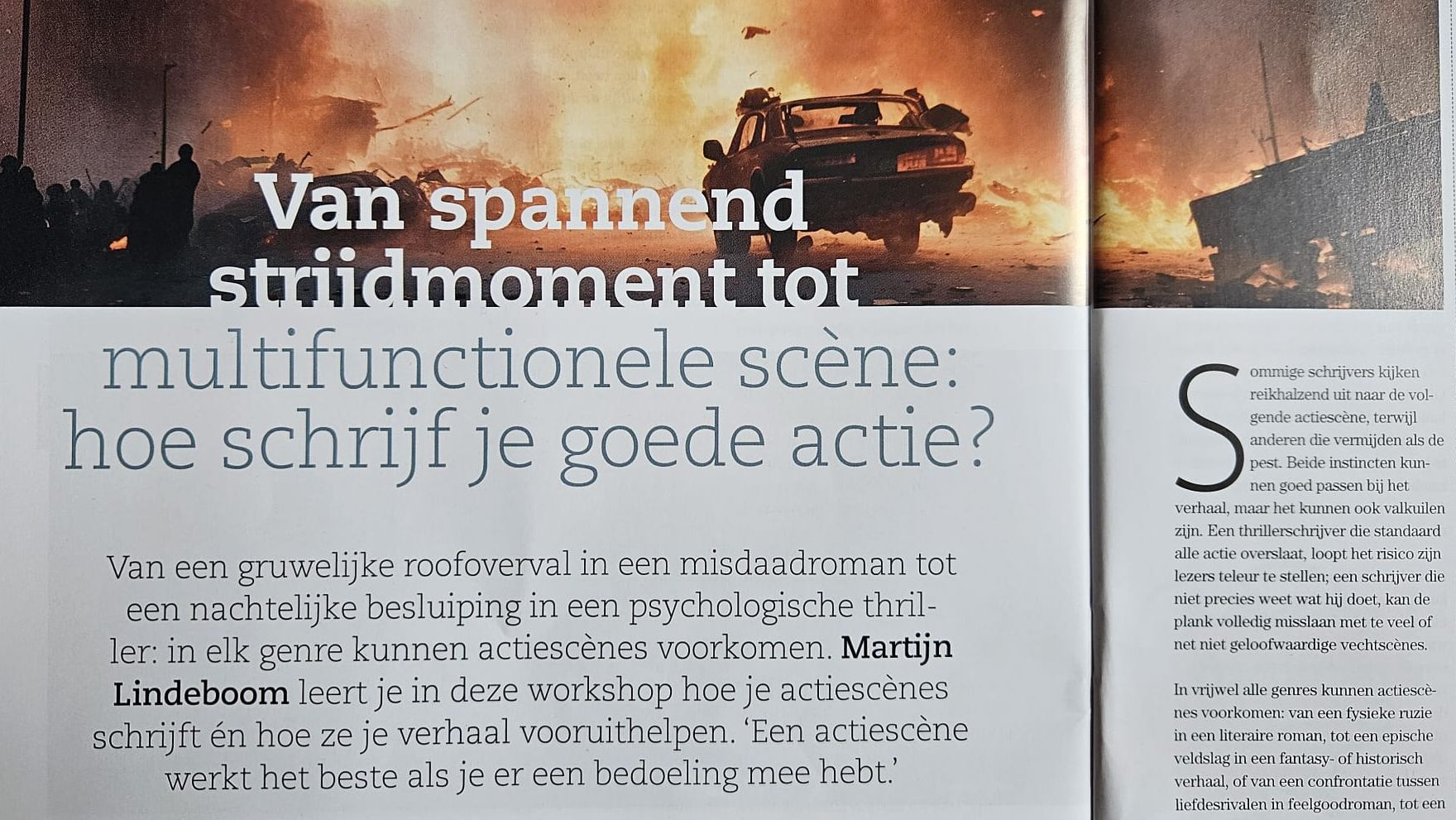 Op 1 oktober is het artikel 'Actie! Zo schrijf je actiescènes met vaart', geschreven door Martijn Lindeboom, verschenen in Schrijven Magazine! Dit tijdschrift is bij boekhandels en Bruna-, AKO-, Primera- en Librisfilialen te koop en via Schrijven Online kun je een abonnement afsluiten of losse nummers nabestellen.