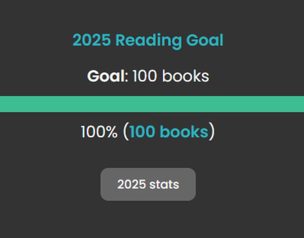 Ik heb de afgelopen drie maanden 24 boeken gelezen - eentje minder dan de vorige twee kwartalen. Daarmee lig ik nog vrijwel op koers voor 100 boeken in 2025. Ik heb er inmiddels vertrouwen in dat ik dat ga halen en mijn Reading Challenge staat dan ook nog steeds op 100, zowel bij Hebban als bij Storygraph.